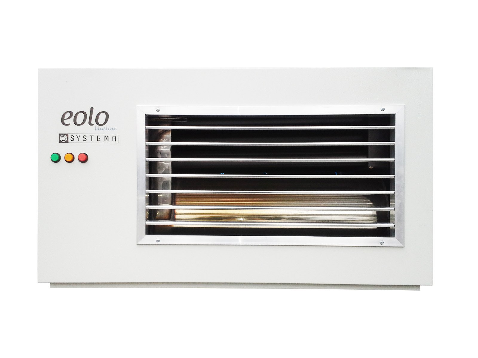 Nagrzewnica gazowa powietrza EOLO to urządzenie do ogrzewania powierzchni średnio i wielkokubaturowych. W wymienniku ciepła, w którym następuje spalanie gazu generowana jest energia cieplna, która jest transportowana dzięki wentylatorom na zewnątrz nagrzewnicy do pomieszczenia. Powietrze jest skierowane w kierunku poziomym na wysokości zainstalowanej nagrzewnicy. Typowa wysokość montażu nagrzewnicy wynosi 4-6 m od poziomu posadzki.